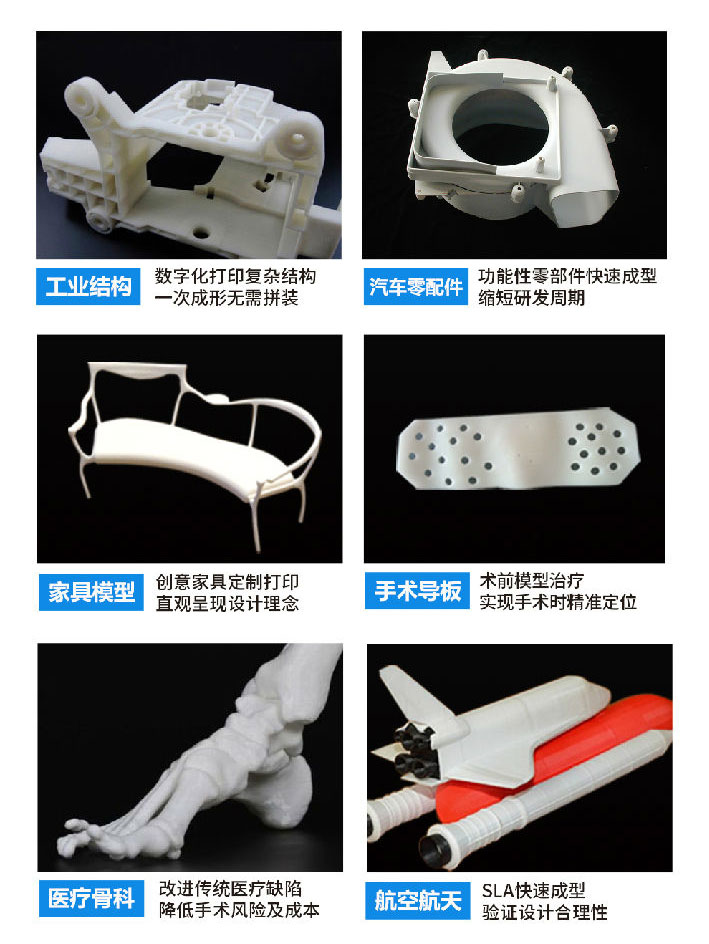 極光工業(yè)級(jí)SLA光固化3D打印機(jī)更是適配多種耗材,它支持透明、耐高溫、高強(qiáng)度等不同屬性的樹脂耗材,全方位滿足各行業(yè)客戶對(duì)材料特性的需求。廣泛用于醫(yī)療、文創(chuàng)、汽車、建筑、工業(yè)、航空航天、鞋類生產(chǎn)、教育、動(dòng)漫等眾多領(lǐng)域。
