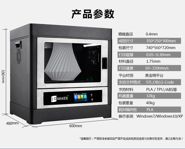 支持文件格式:STL, OBJ、 G-Code機器尺寸:590*460*600mm