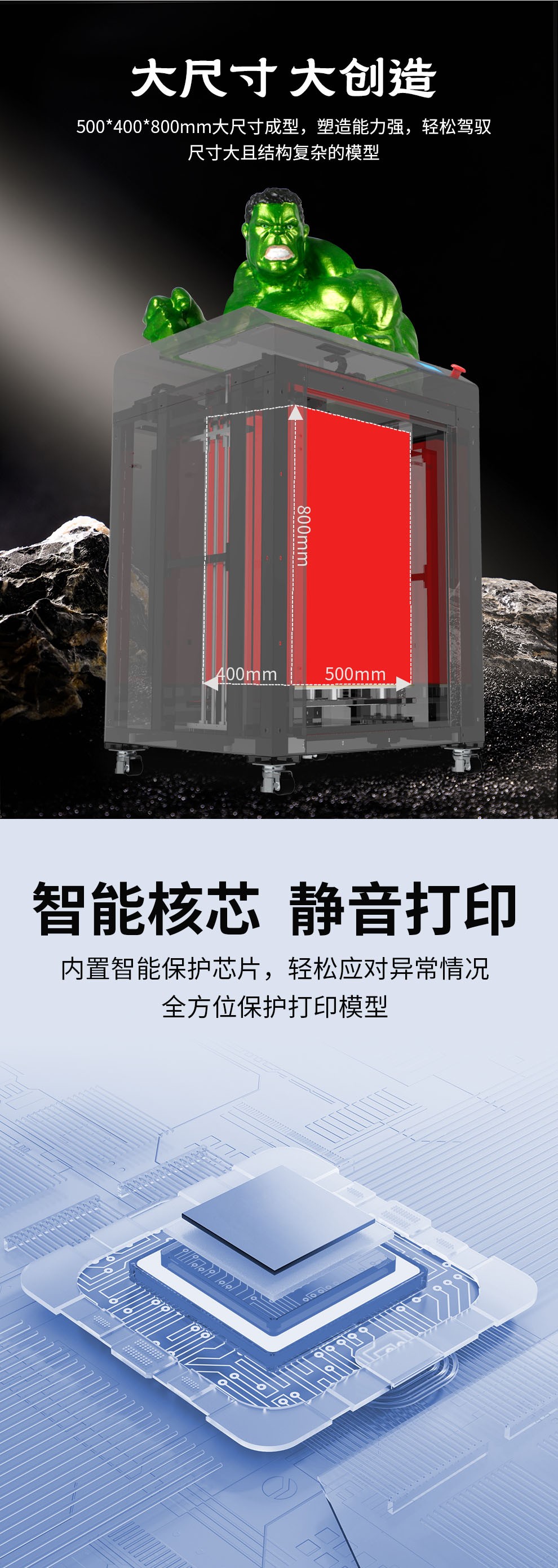 成型尺寸:500*400*800mm打印層厚:0.05-0.3mm